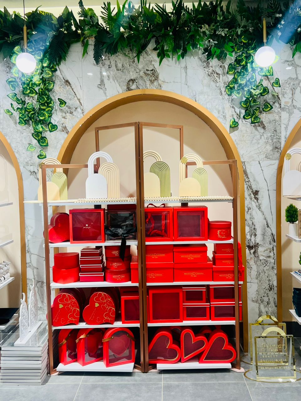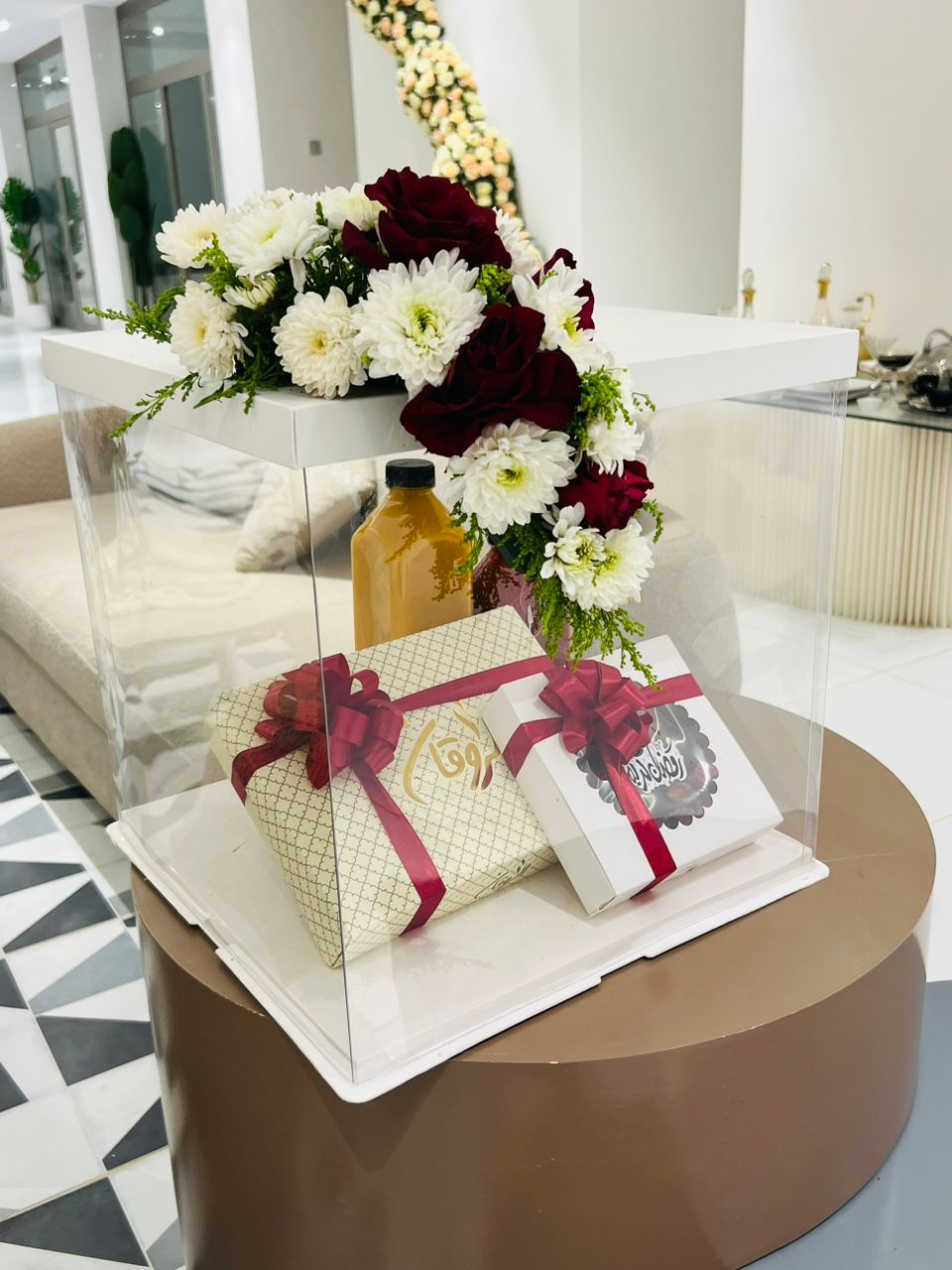 التغليف والمحتويات وحجم البوكس وعدد الورد حسب رغبة الزبون والأسعار كالأتي