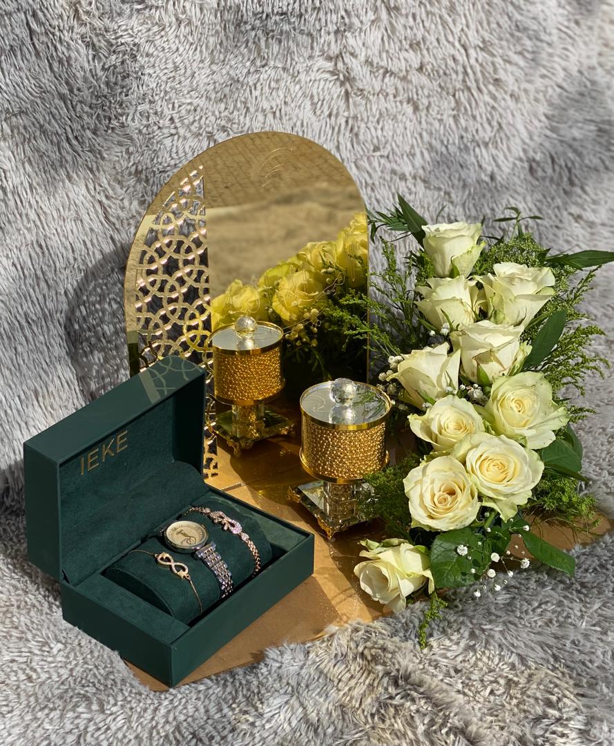 التغليف والمحتويات حسب رغبة الزبون وتكون المحتويات كالأتي ساعة، نظارة، مجوهرات، ذهب، مبالغ مالية، جميع انواع الشوكلاطة والحلو والمكسرات والعصائر والمشروبات الغازية ومتوفر لدينا جميع انواع التغليف وبوكسات الهدايا وتبدء الاسعار من 00 إلى 00