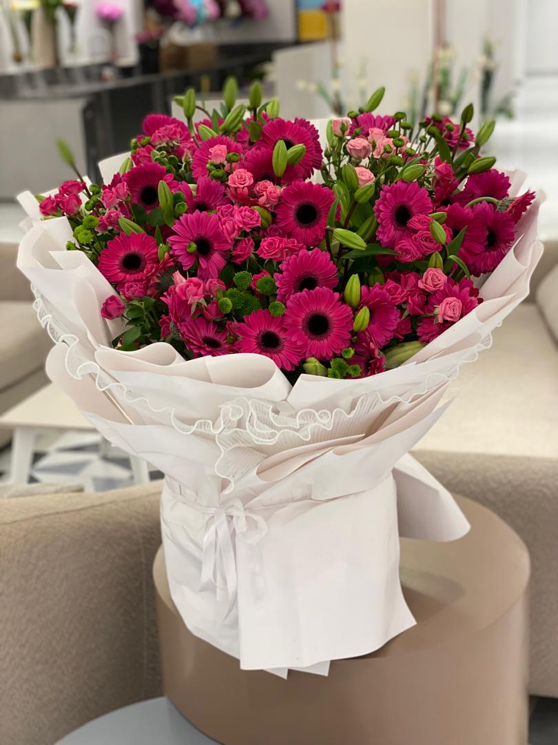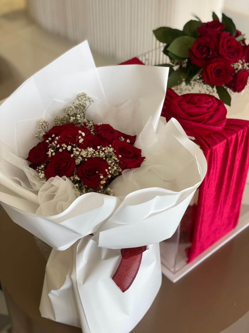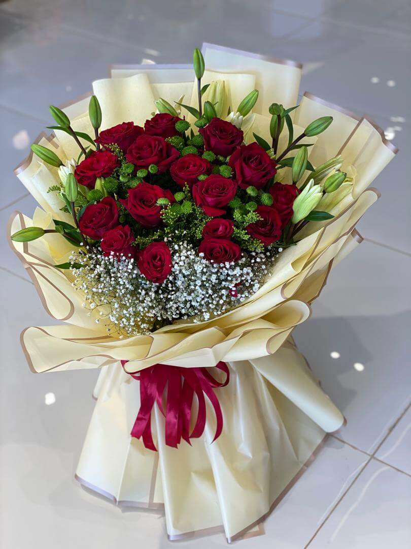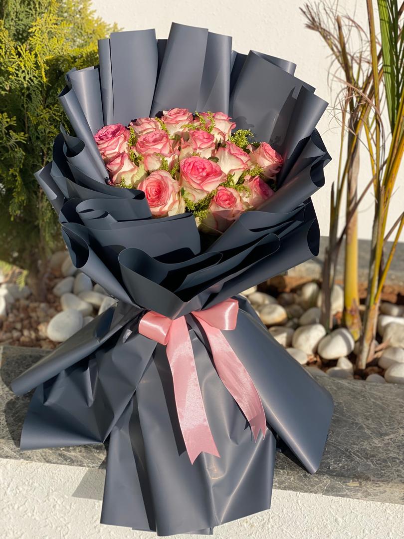 تتميز الباقات بحجم الباقة وعدد الورد 15 وتبدء الاسعار من 150 د.ل الى 500 د.ل
