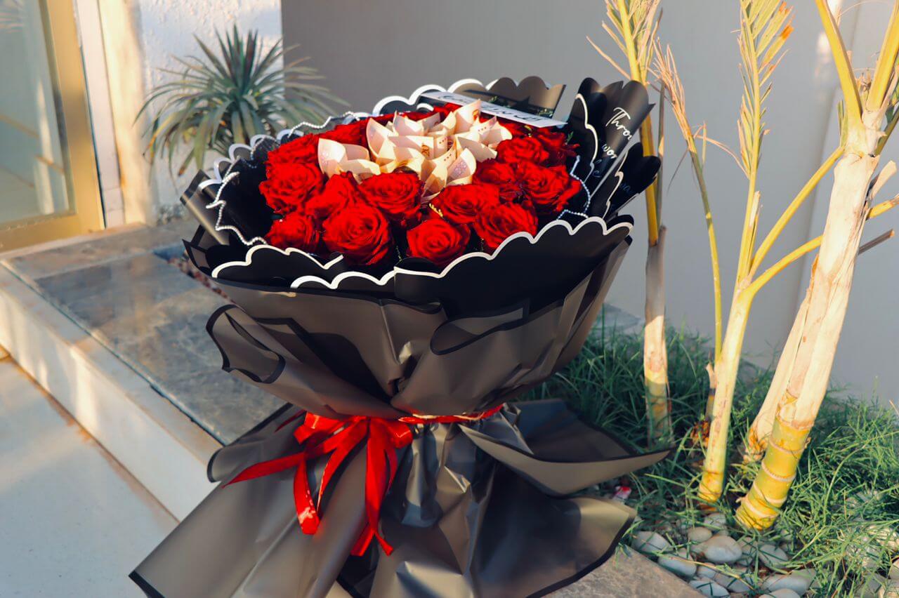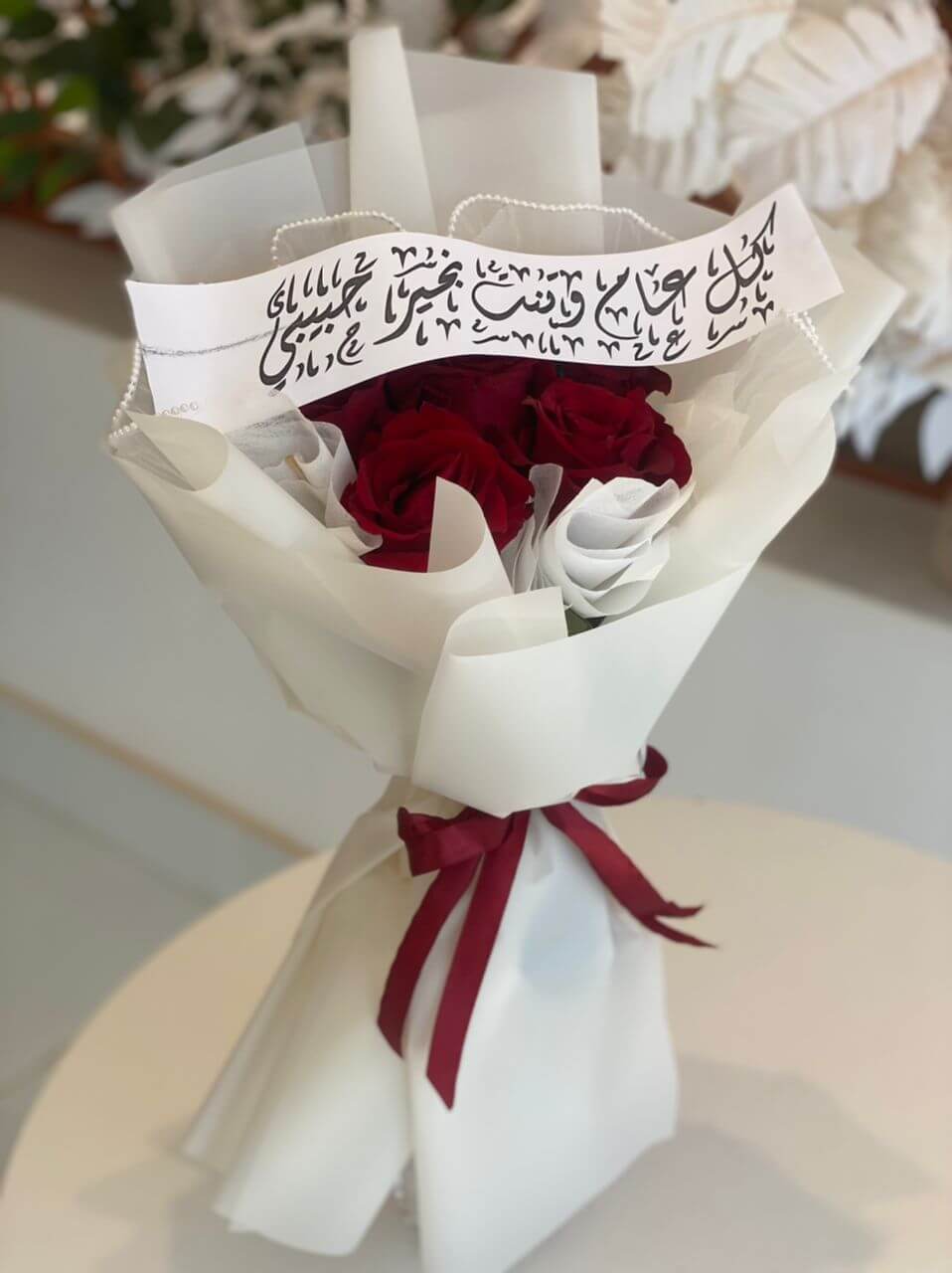 تتميز الباقات بحجم الباقة وعدد الورد من 5 الى 30 وتبدء الاسعار من 50 د.ل الى 300 د.ل